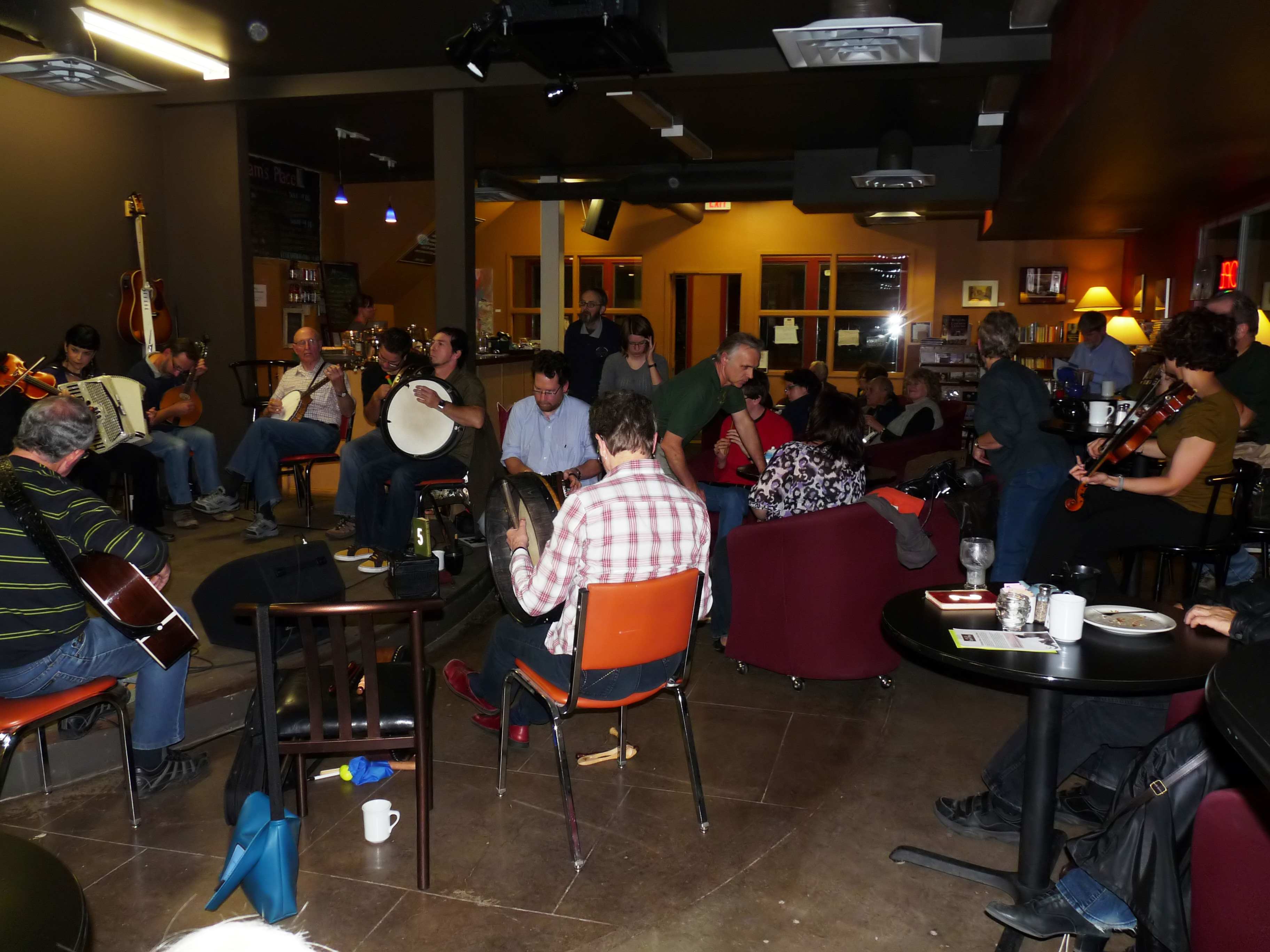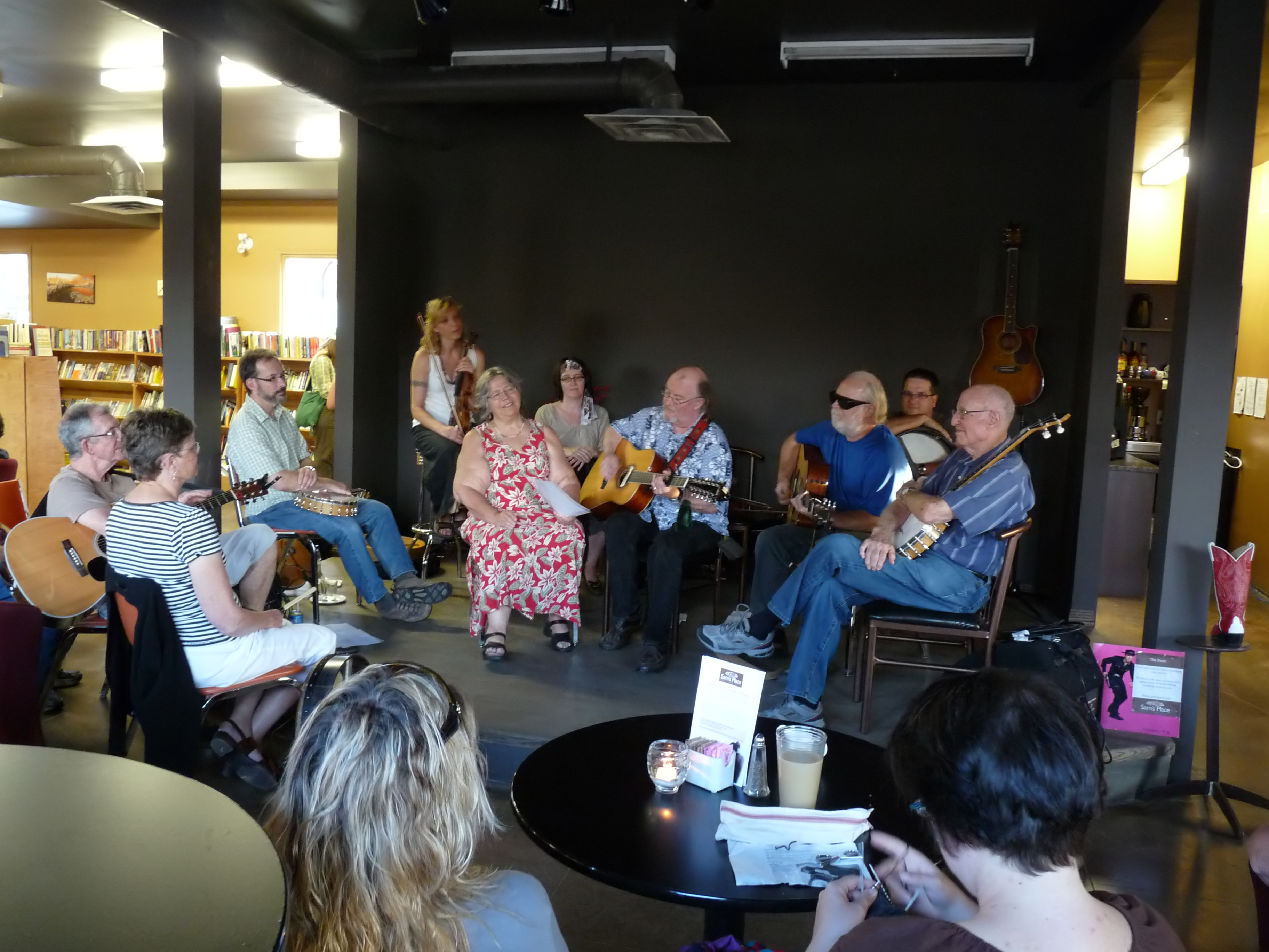 It’s comfortable, intimate, and fun! So by all means, drop by, all are welcome to join in or sit and listen to the music :