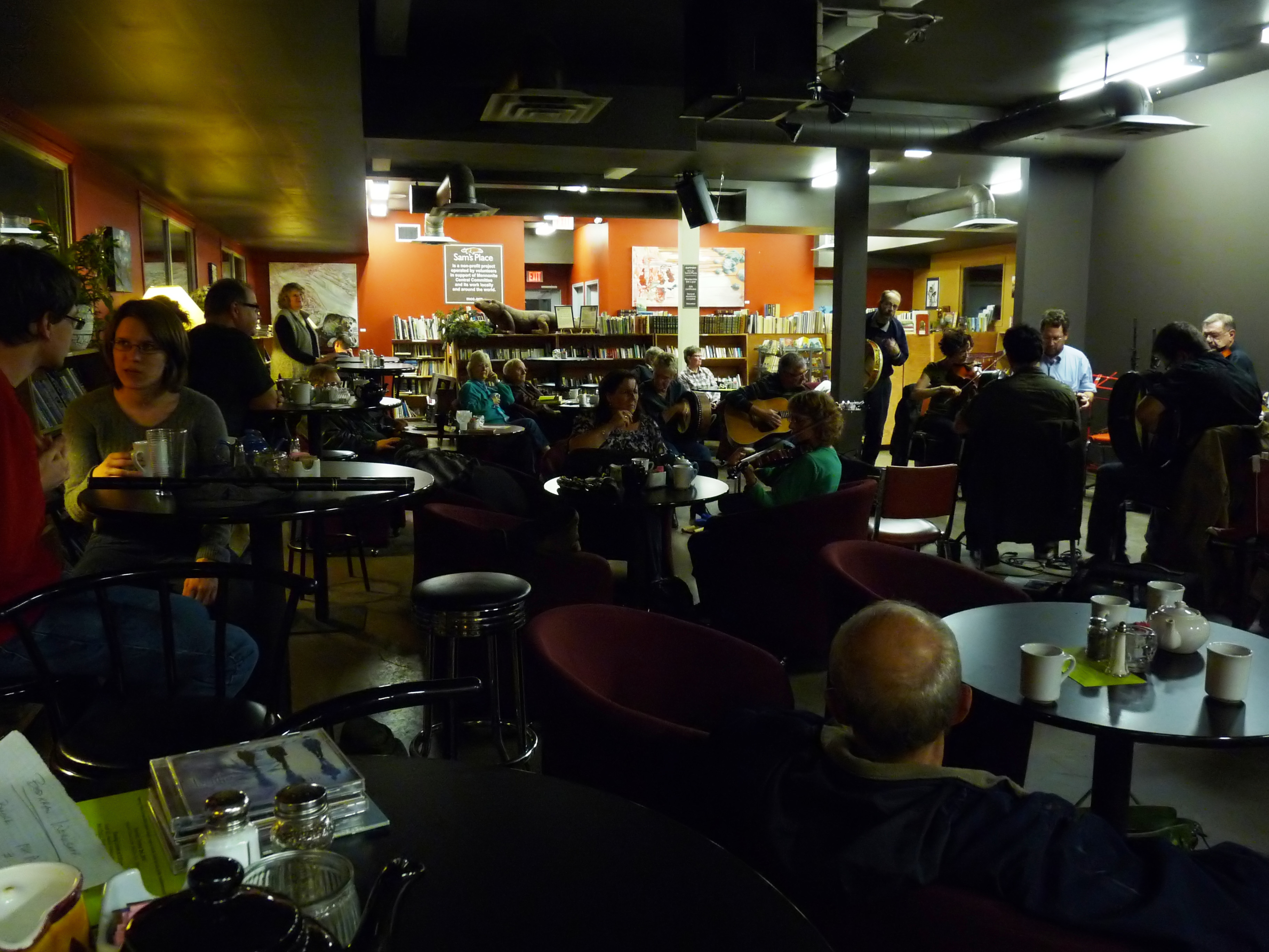 Sam’s Place is a restaurant and book store and usually on the Last Friday of every month a place to play and enjoy jigs and reels and is open to all skill levels